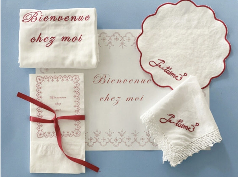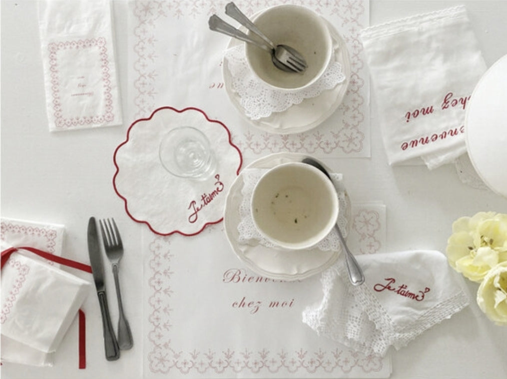 カラー - 白地に+クロッシェ+赤文字